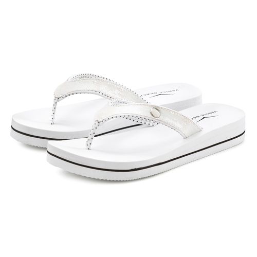 VENICE BEACH Sandale, Pantolette Badezehentrenner Zehentrenner, Badeschuh ultraleicht mit Glitzerband VEGAN (weiß)