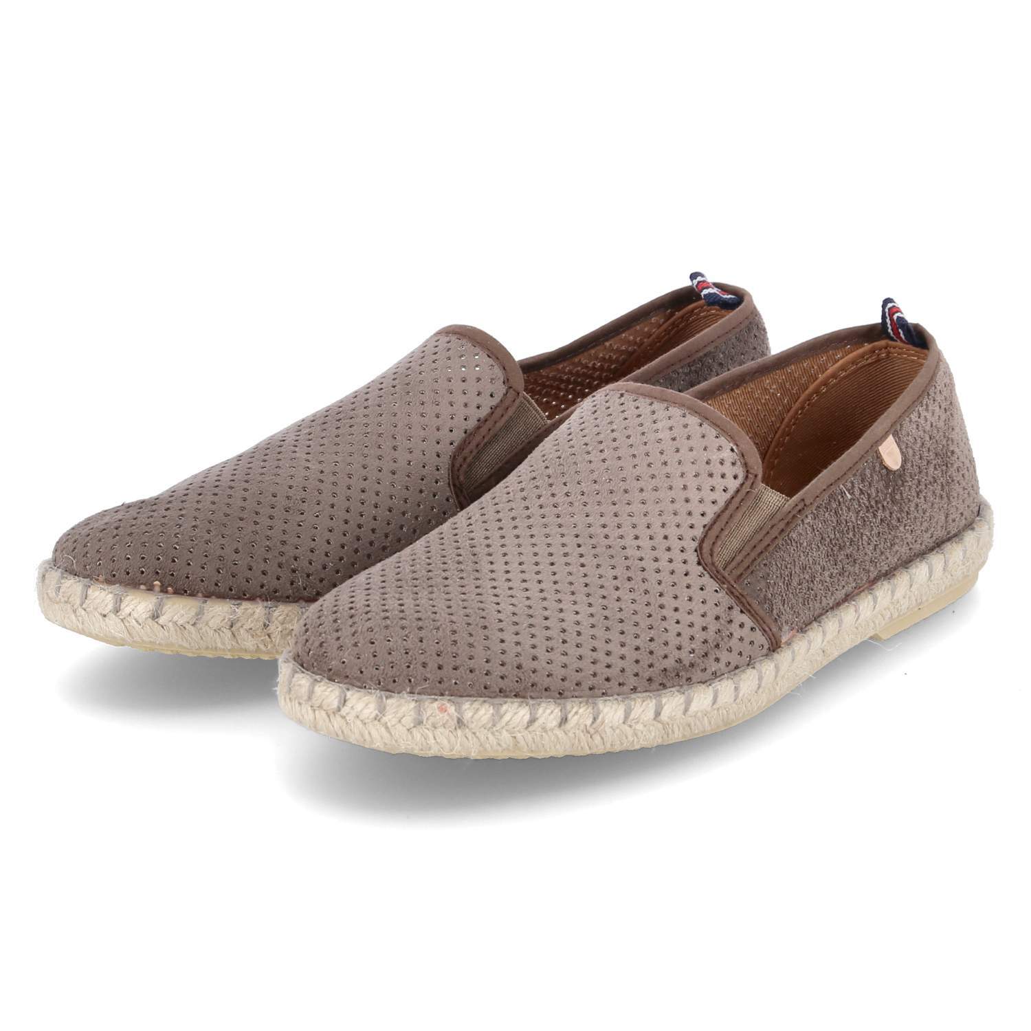 Der VERBENAS Tom Pacific Espadrille ist der ideale Begleiter für einen lässigen Strandlook. Der stylische Slipper in taupefarbenem Veloursleder-Optik mit perforierten Stretcheinsätzen vereint Komfort und Style auf einzigartige Weise. Die bequem gepolsterte Innensohle aus Leder sorgt für angenehmen Tragekomfort, während die leichte Profilsohle aus Synthetik für sicheren Halt auf jedem Untergrund sorgt. +