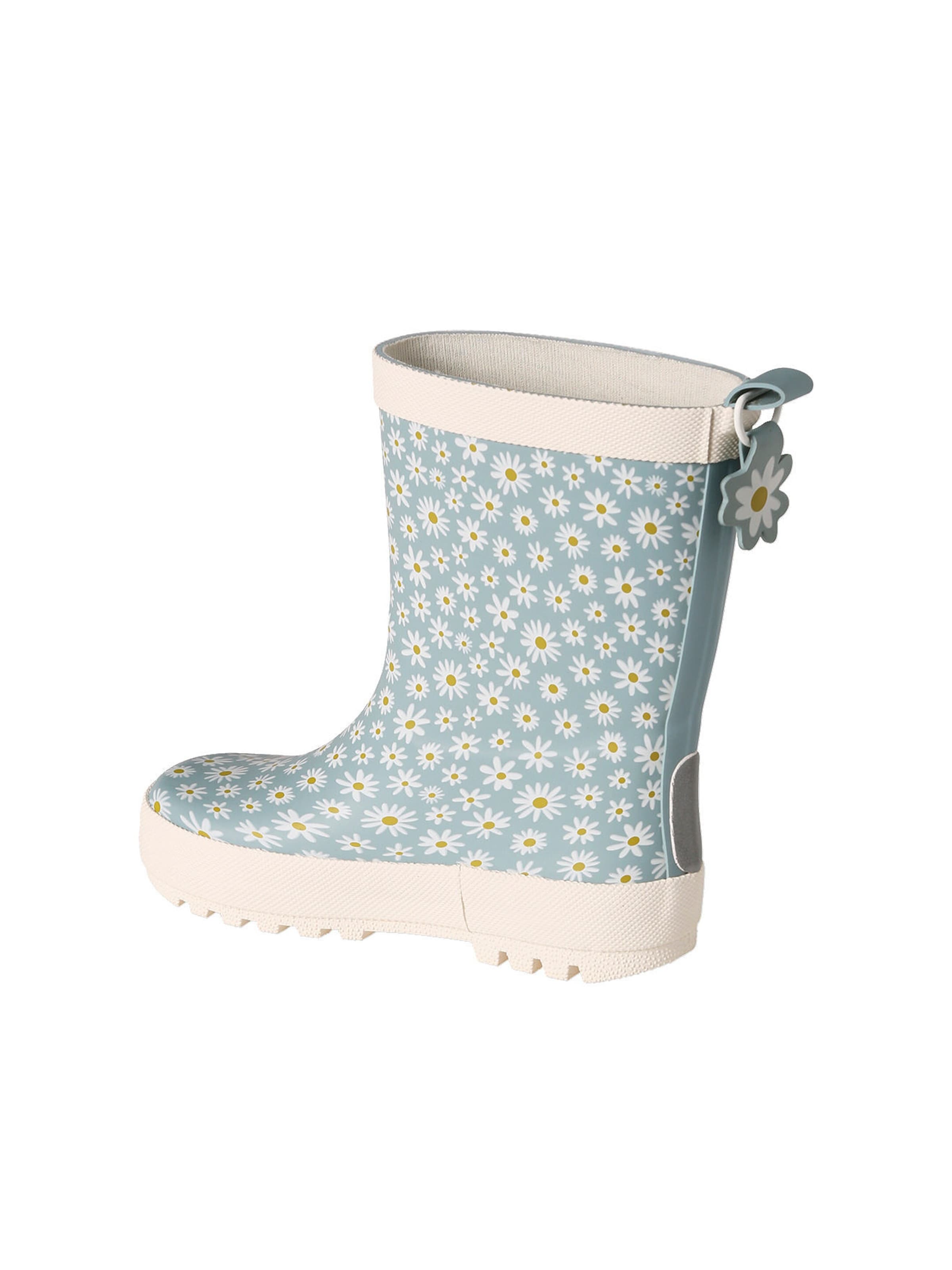 Geblümte Kinder Gummistiefel LILIBETH Besonderheiten:Innensohle zum Lüften herausnehmbarReflektorstreifen hinten für mehr Sicherheit in der DämmerungMaterial:Obermaterial: KautschukFutter und Innensohle: Baumwolle (Textil)Laufsohle: GummiDetails:BlumenprintBlume als AnziehlascheRutschhemmende ProfilsohleMatter, weicher KautschukBequem und biegsamHinweis:So bestellst du die richtige Größe: Bitte miss vor dem Bestellen die Füße deines Kindes aus. +