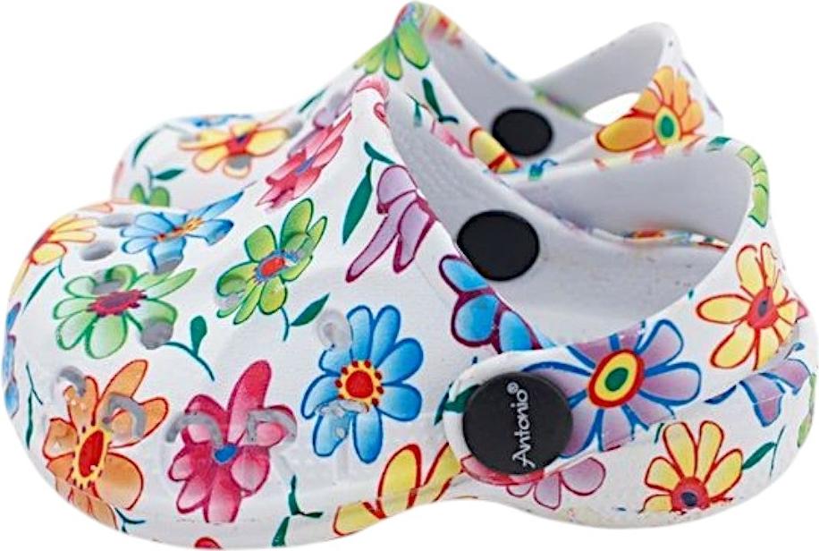 Die Baby Clogs mit Blumenmuster bieten eine praktische und bequeme Lösung für kleine Füße. +
