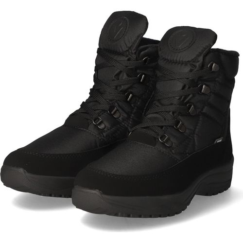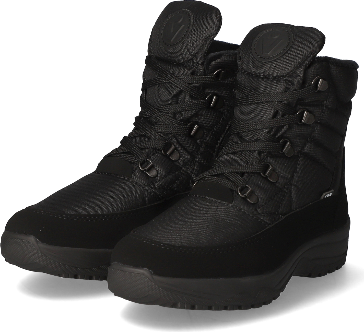Vista Damen Winterstiefeletten / Schnürstiefeletten Schwarz Textil - wasserabweisend und atmungsaktiv (KLIMATEX) - Schnürung und Reißverschluss - typisches Markenlogo - gepolsterter Einstieg - warmes Textilfutter - gepolsterte Wechseldecksohle - flexible und rutschhemmende OC-System-Profilsohle.