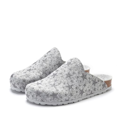 Vivance Pantolette, Clog, Pantoffel, Hausschuh aus Filz mit wärmenden Korkfußbett & Sternenprint (grau)