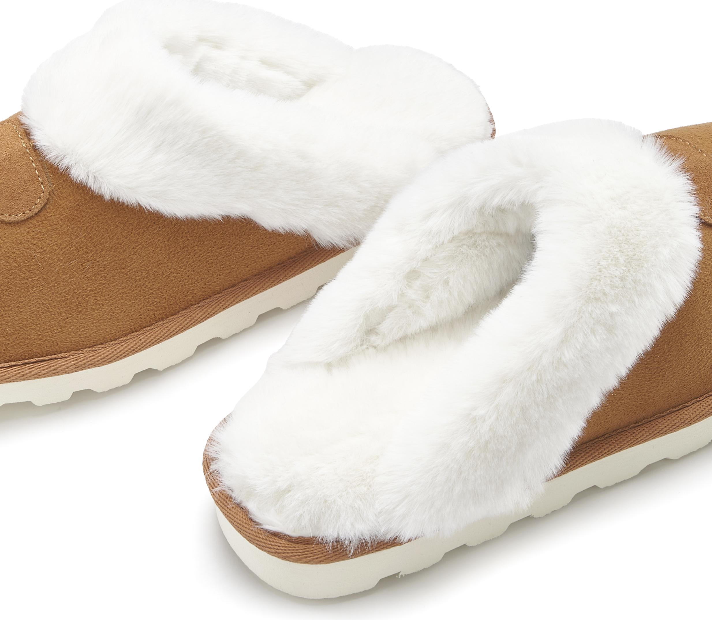 Vivance Plüsch Hausschuhe, Pantolette, Pantoffeln, Clogs, Schlappen, Hausschuh mit Warmfutter VEGAN (braun)