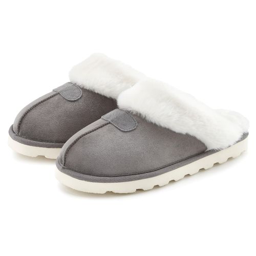 Vivance Plüsch Hausschuhe, Pantolette, Pantoffeln, Clogs, Schlappen, Hausschuh mit Warmfutter VEGAN (grau)