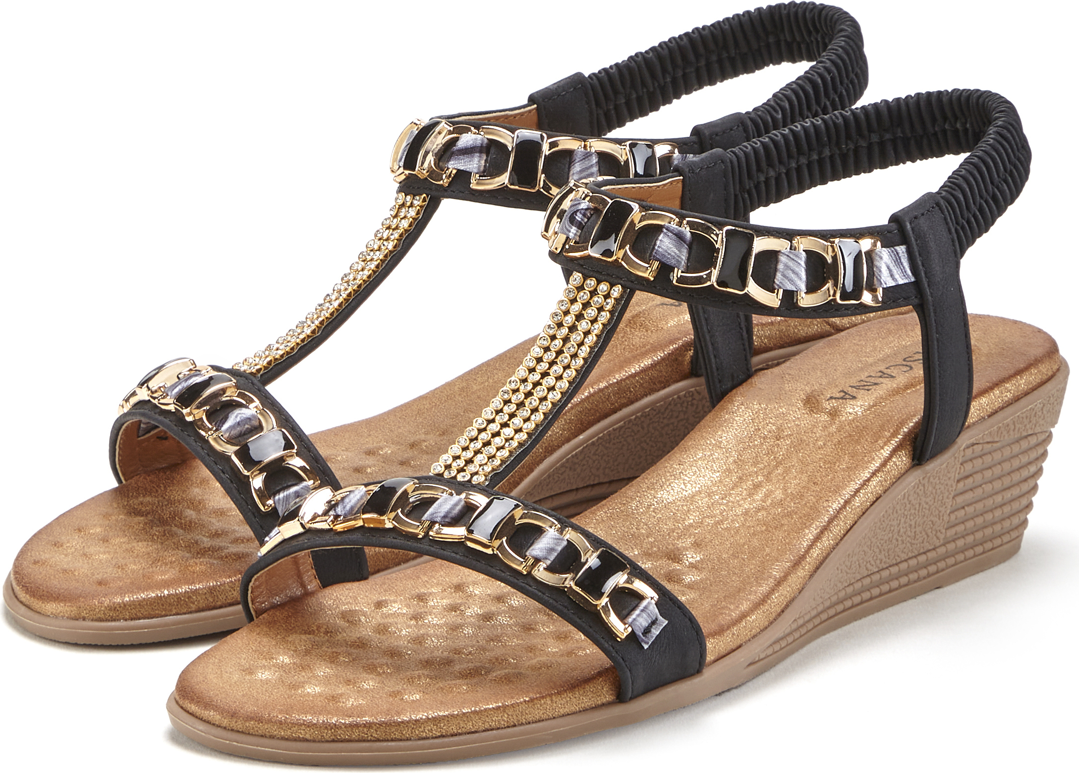 Vivance Sommerschuh, Sandalette mit elastischen Riemchen, offene Schuhspitze, mit Glitzerdetails (schwarz)