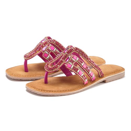 Vivance Zehentrenner Sandale, Pantolette aus Leder mit Schmucksteinchen (rosa)
