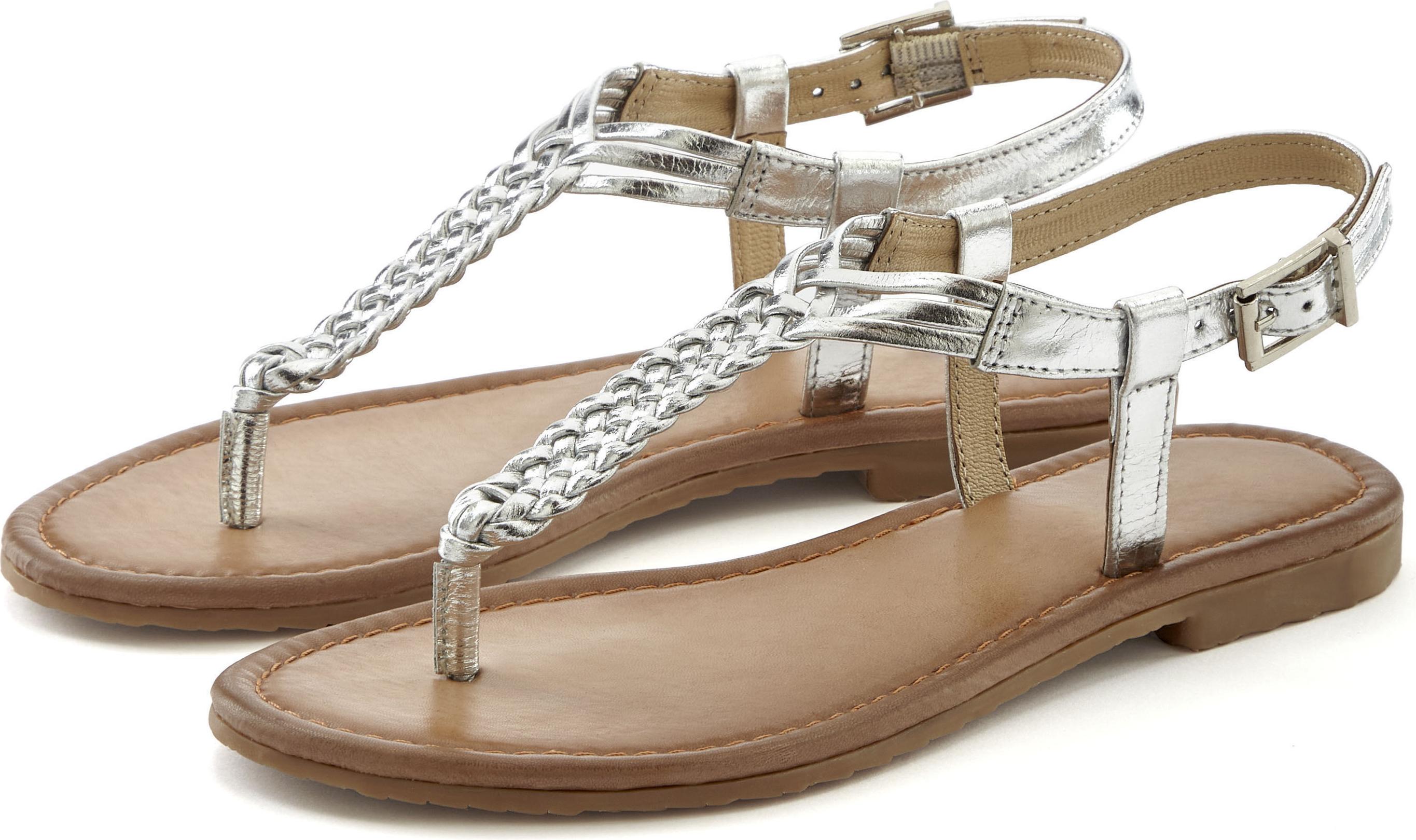 Vivance Zehentrenner Sandalette, Sommerschuh,Sandale aus Leder mit Flecht-Optik (silber)