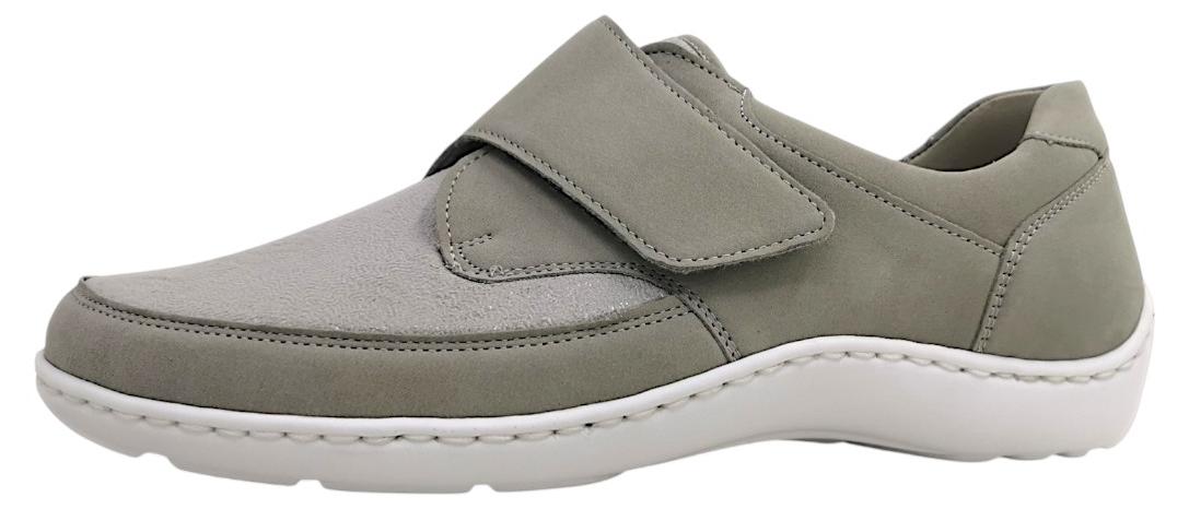 Marke: WaldläuferModell-Nr.: 496H31 337 070Modellname: HENNIArt: Damenschuhe - bequeme Slipper - Halbschuhe, Waldläufer - OrthoTrittFarbe: hellgrau +, grau kaleidoskopisch glänzendes Muster +, weiß (stein/silber)Obermaterial: Nubuck Leder +, Textil (Denver, Kaleido-Stretch)Innenfutter: Echtleder und Textil, besonders weich im VorfußbereichInnensohle: Echtleder Komfort FußbettWechselfußbett: herausnehmbare InnensohleLaufsohle: PU-LaufsohleVerschluss: Klettverschluss, 1fachAbsatz: flach - kein AbsatzSchuhform: rundGrößenangabe: fällt normal ausWeitenangabe: H - Extra Weitinterne Artikelnummer für Ihre Rückfragen: 240-26-0004