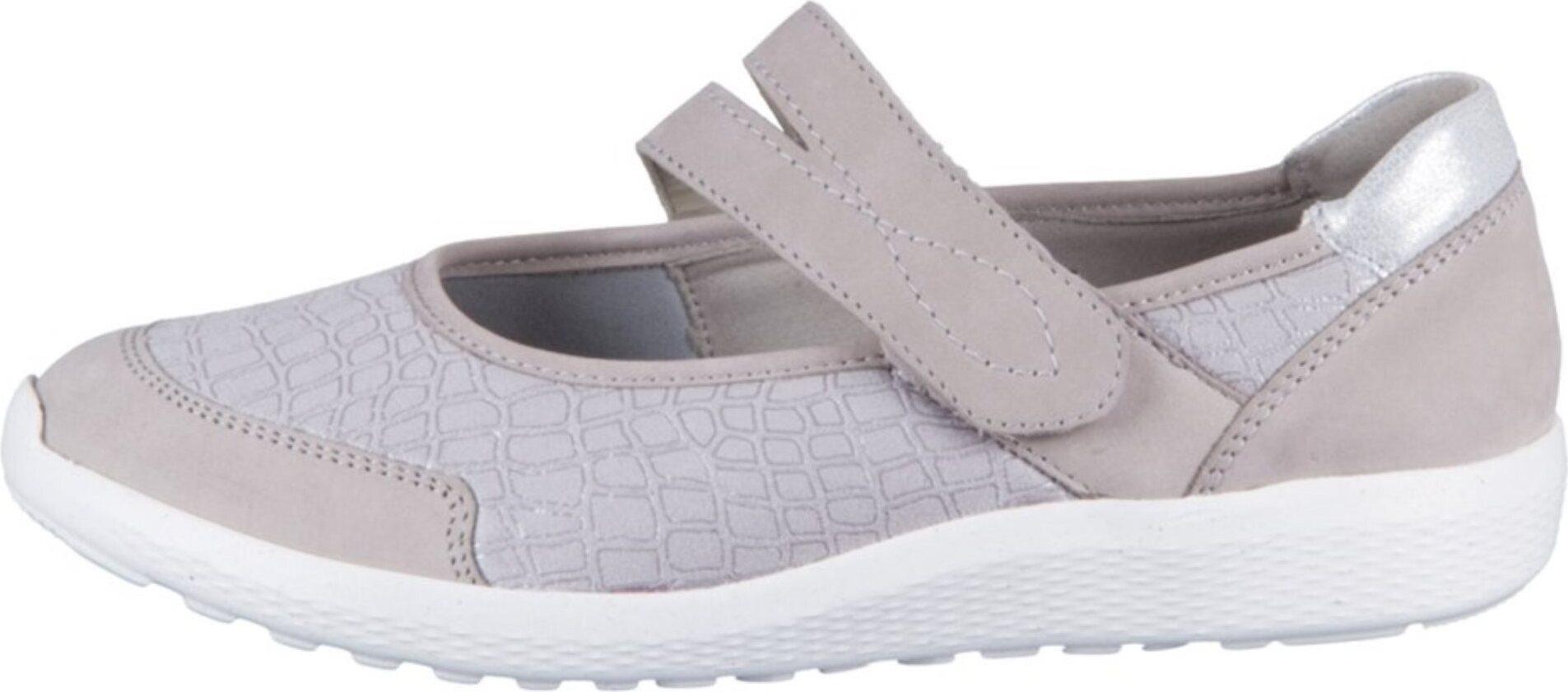 Marke: WaldläuferModell-Nr.: 634K31 309 263Modellname: K-IRAArt: Damenschuhe - Ballerina - Mary Jane, Waldläufer - OrthoTrittFarbe: taupe +, silber-grau +, schimmernd gemustert +, weiß (stein/stein/silber)Obermaterial: Nubuck Leder +, Textil (Denver, Nalastretch, Bufa)Innenfutter: Textil - weich gepolstertInnensohle: Textil Komfort Fußbett, aus recyceltem MaterialWechselfußbett: herausnehmbare InnensohleLaufsohle: EVA (Ethylenvinylacetat) - leicht und widerstandsfähig, LuftpolstersohleVerschluss: KlettverschlussAbsatz: flach - kein AbsatzSchuhform: rundGrößenangabe: fällt normal ausWeitenangabe: K-Weite (Spezialweite)interne Artikelnummer für Ihre Rückfragen: 241-35-0005