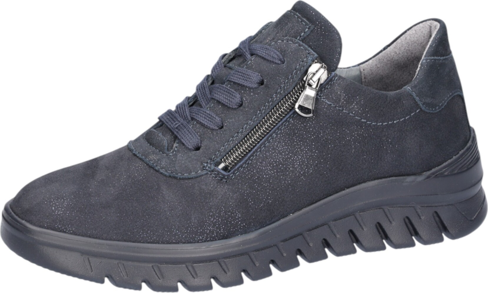 Marke: WaldläuferModell-Nr.: 913008 202 194Modellname: H-BIGGIArt: Damenschuhe - bequeme Schnür- HalbschuheFarbe: dunkelblau +, Sohle in schwarz +, Glitzer in blau (notte)Obermaterial: Echtleder - Nubuck (Calli, Memphis, Glitzer)Innenfutter: Echtleder und TextilInnensohle: Echtleder Komfort FußbettWechselfußbett: herausnehmbare InnensohleLaufsohle: GummisohleVerschluss: Schnürung und ReißverschlussAbsatz: Keilabsatz / Wedge, Keil ca. +