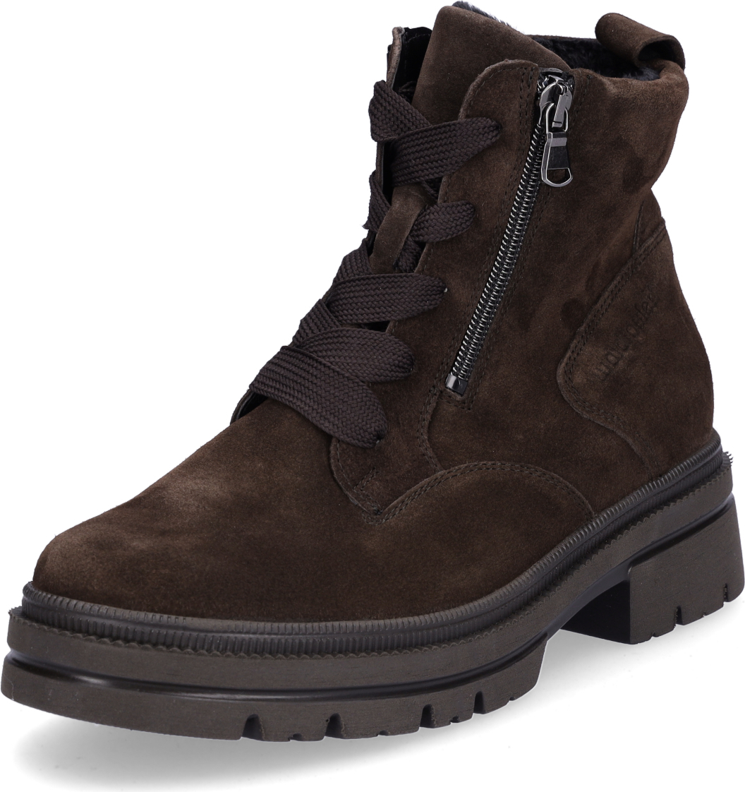 Waldläufer Damen Schnürboot in der Weite H aus braunem Rauleder mit flauschigem Fleecefutter.