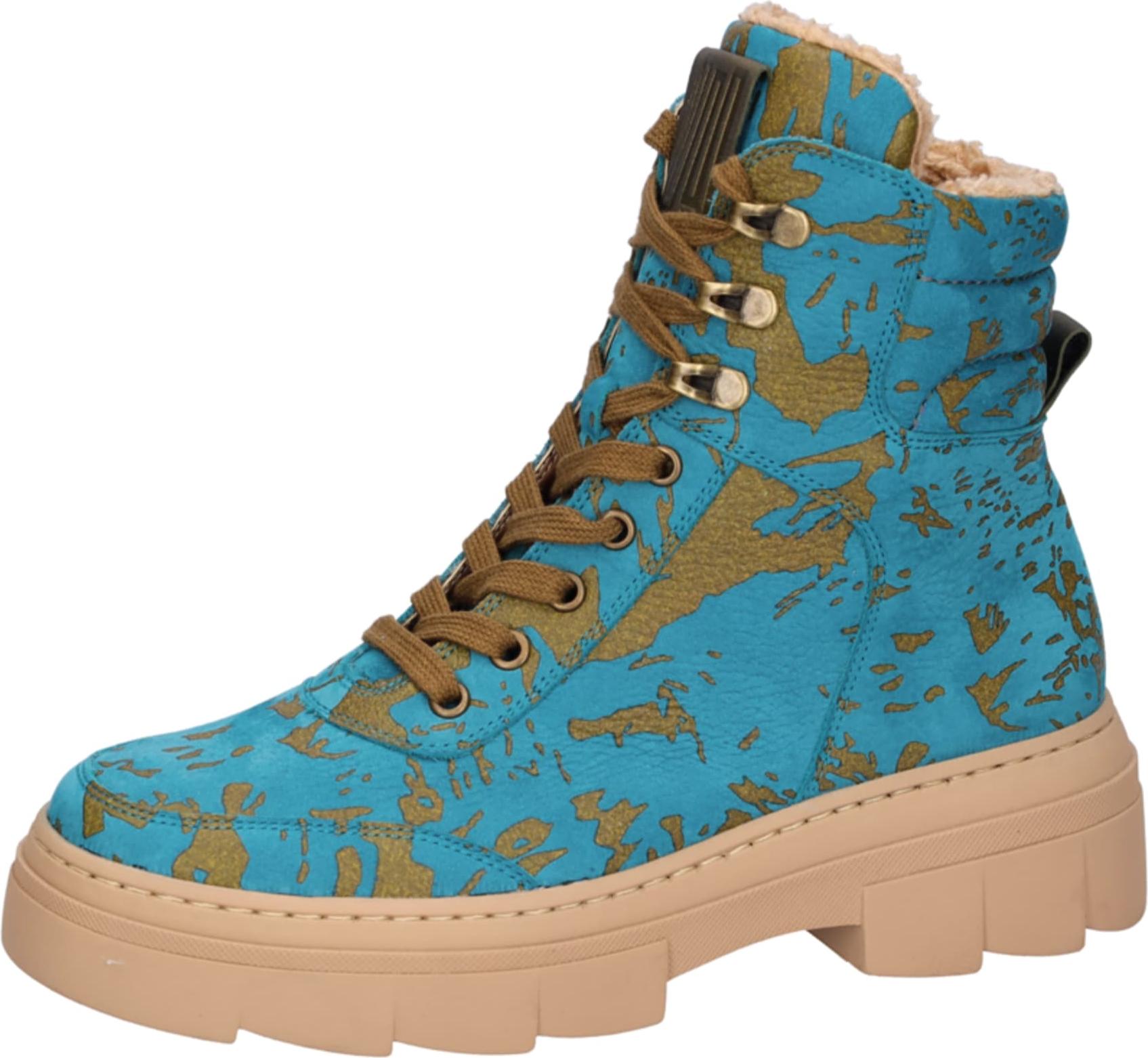 Waldläufer Damen Schnürboot aus Echtleder in Türkis mit Reißverschluss, dickem Warmfutter aus Textil und robuster Laufsohle mit Luftpolsterung