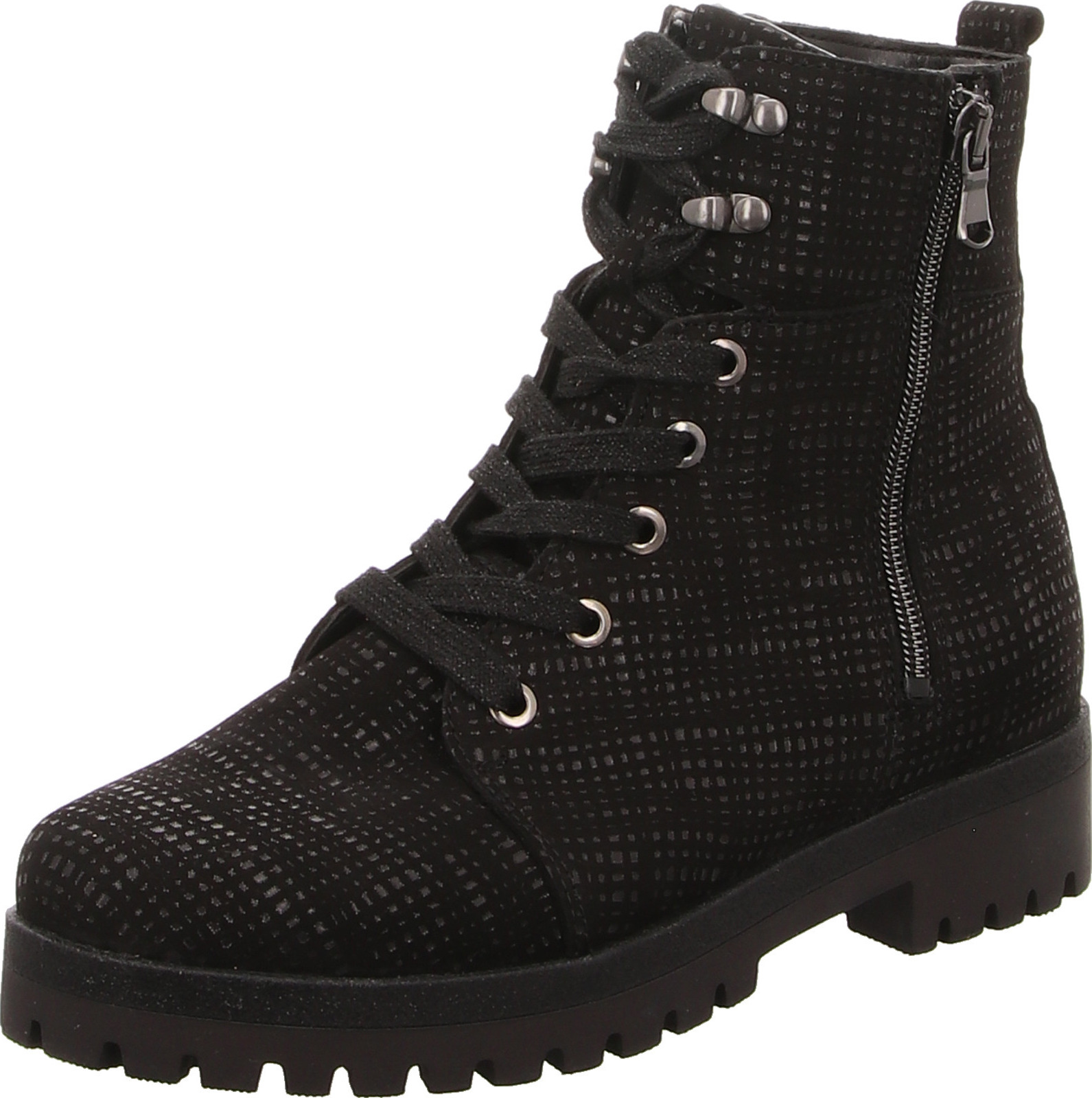 Waldläufer Damen Schnürstiefelette schwarz metallic Stiefelette (schwarz)