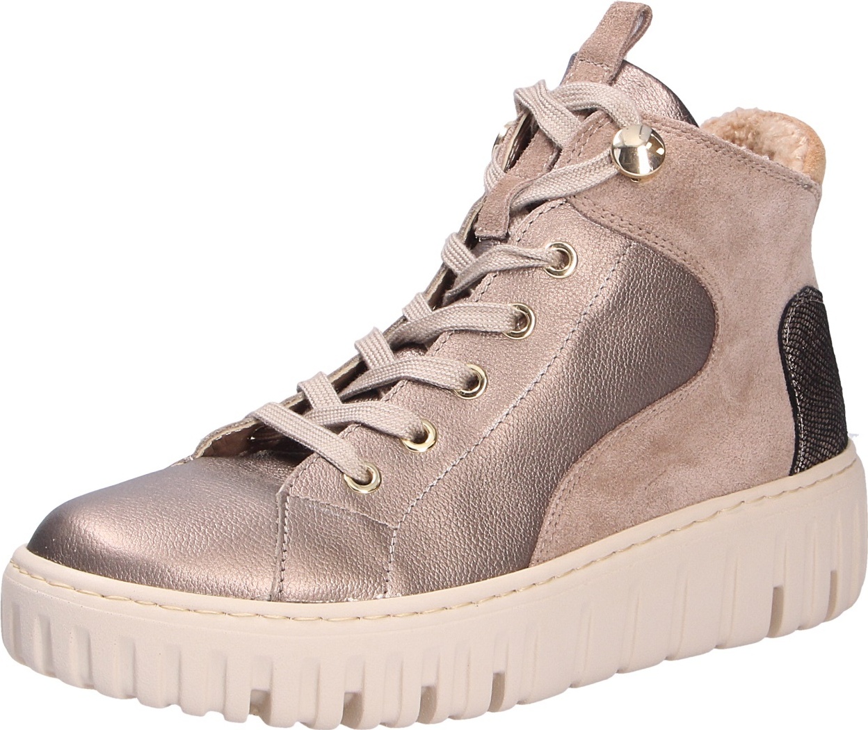 Trendig und schick begeistert uns diese Schnürstiefelette für Damen in der neuen Saison.Das Modell H-Livia aus dem Hause Waldläufer überzeugt mit einem hochwertigen Obermaterial aus feinem Echtleder in Beige und auffallenden schimmernden Metallic Parts, die garantiert Blicke auf sich ziehen.Die regulierbare Schnürung und der seitliche Reißverschluss erleichtern den Einstieg und die flache Plateausohle gibt guten Halt.Die Ausfertigung in Weite H bietet den Füßen spürbar mehr Platz. +