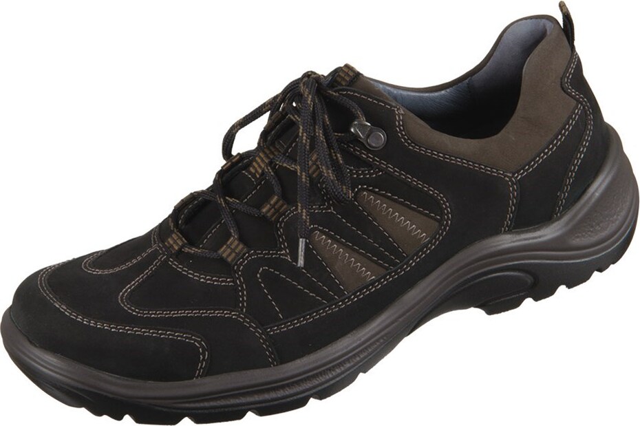 Waldläufer Hayo, Outdoor-Halbschuh, Nubukleder, schwarz / braun, Weite Schnürschuh (schwarz)