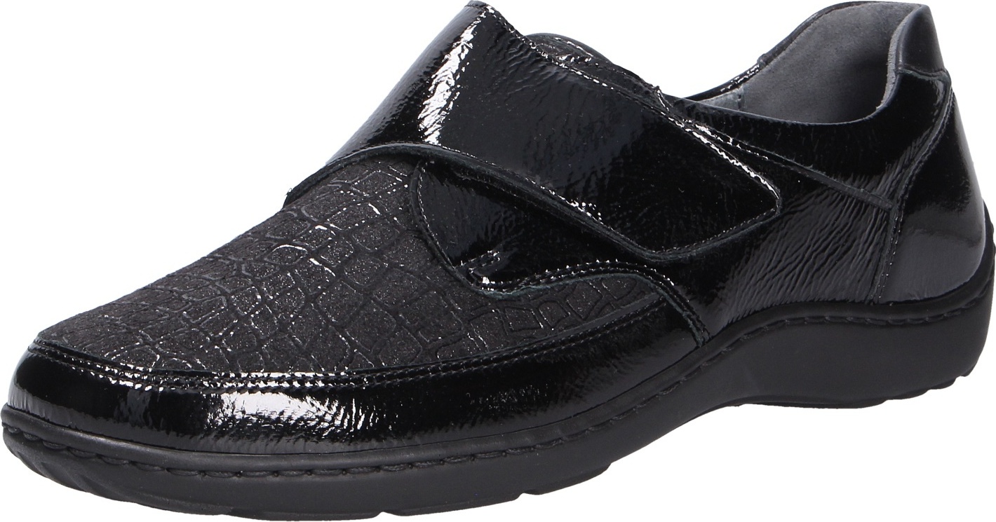 Das Obermaterial aus glänzendem Lackleder kombiniert mit einem elastischen Stretcheinsatz in klassischem Schwarz sorgt für eine elegante Optik und gleichzeitig optimale Anpassungsfähigkeit an den Fuß.Dank der flexiblen Materialien passt sich der Schuh auch bei Schwellungen oder Druckempfindlichkeiten angenehm an. Die komfortable Weite H, das atmungsaktive und antibakterielle Innenfutter sowie die weiche Polsterung sorgen für ein rundum angenehmes Tragegefühl.Das herausnehmbare Fußbett lässt sich im Handumdrehen gegen individuelle orthopädische Einlagen austauschen.