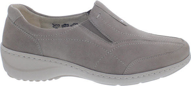 Das Obermaterial ist aus weichem Nubukleder (Denver) in der Farbe Corda (beige) gefertigt. Gut geeignet für orthopädische Einlagen durch die herausnehmbare, lederbezogene Fußbetteinlage.